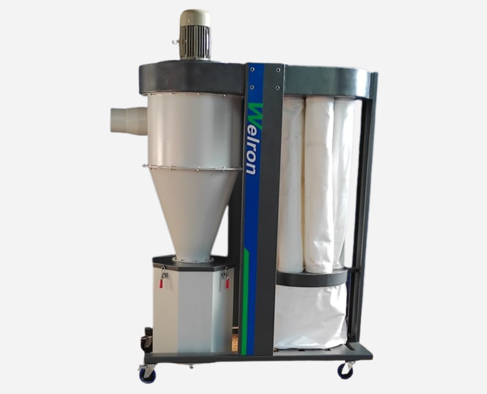 Two Stage Wood Dust Collecting Machine by Welron Industries is a powerful dust extraction system designed for woodworking applications. It features a dual-stage filtration process—separating heavy wood chips in the first stage and fine dust in the second—for improved efficiency and cleaner air. Built with durable mild steel and equipped with strong suction and easy maintenance, it’s ideal for carpentry units, sawmills, and furniture workshops.